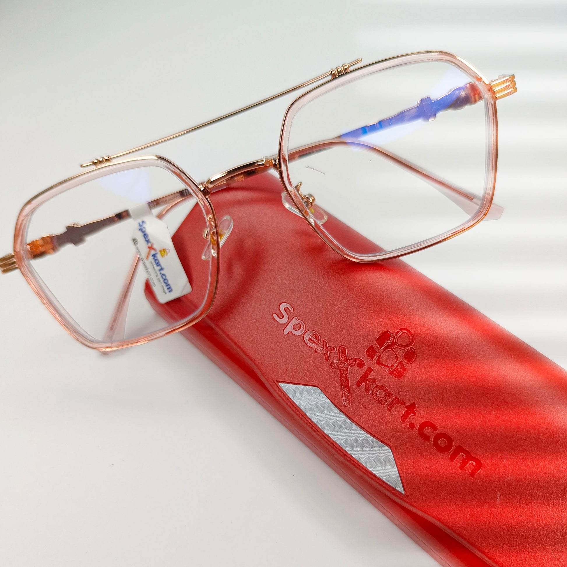 Contain - Spectacle frame with Blue ray cut lenses , Stylish box, selvage (High-quality fabric cleaner cloth) and Home test Blue Block torch with blue ray cut testing paper